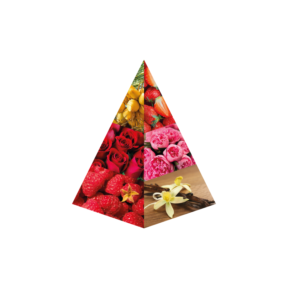 When the day fades, the perfume settles into an intimate embrace. The sensual glow of Musk mingles with the tender sweetness of Raspberry and Vanilla, leaving a lingering trail that feels both innocent and irresistible