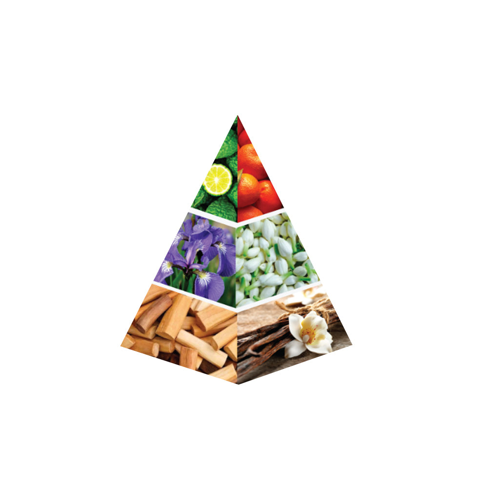A luminous opening of bergamot, pink pepper, and mandarin creates a fresh and vibrant introduction. Floral heart notes of orris, jasmine, and ylang ylang add elegance and softness. The scent finishes with a warm, sensual base of woody notes, vanilla, moss, musk, and creamy sandalwood leaving a lasting, refined impression.